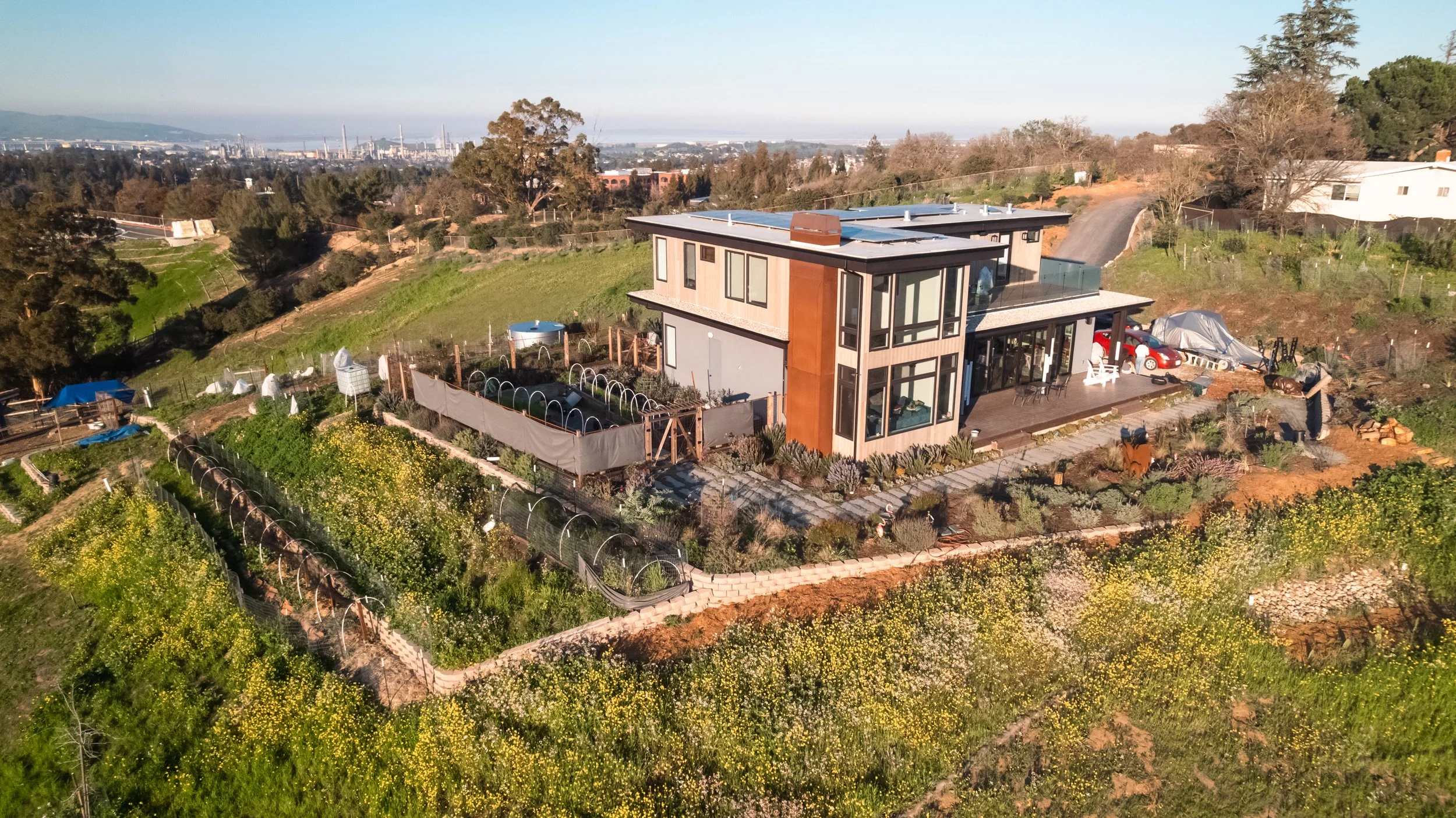 Located on a knoll with valley views on three sides